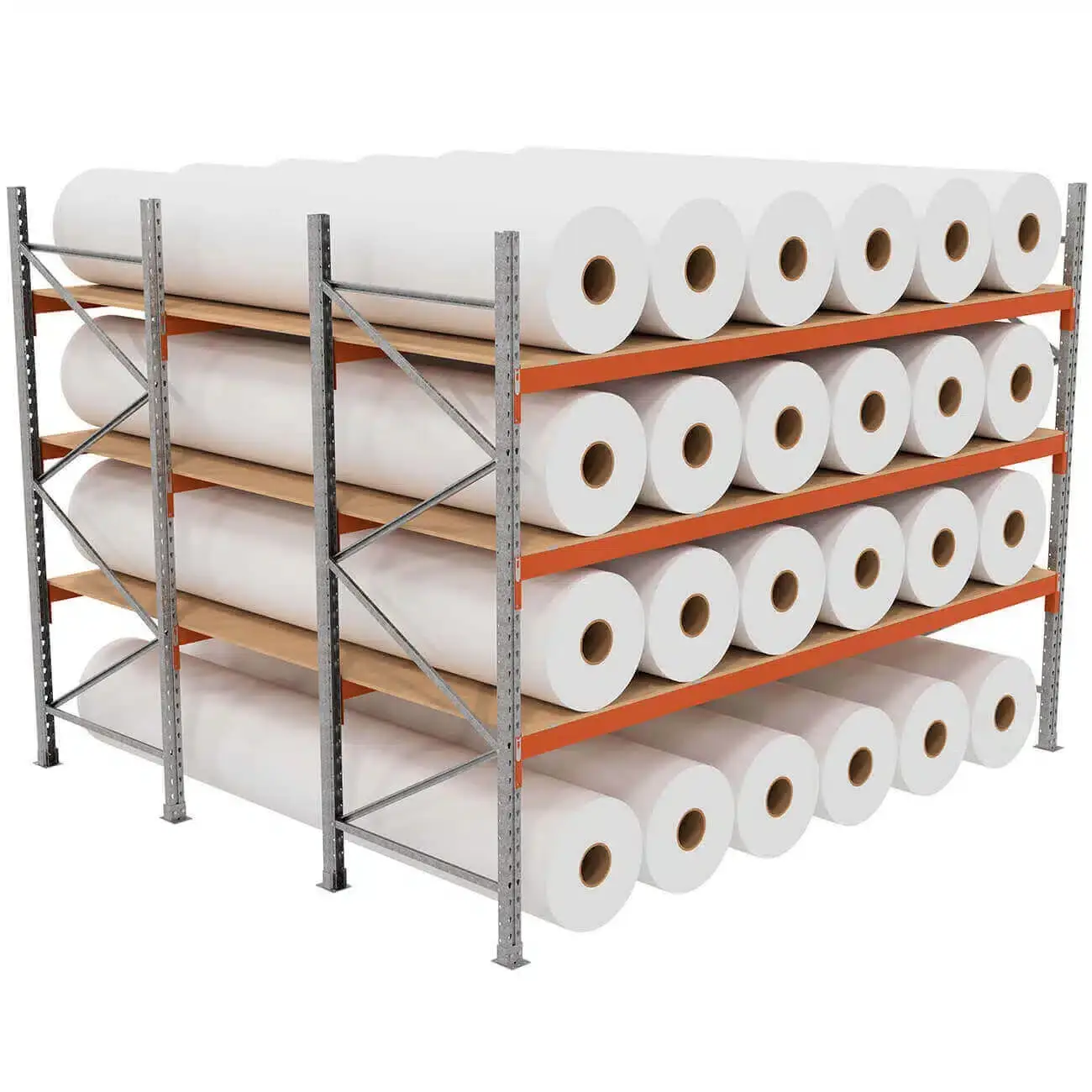 Racks are designed for forklifts with pole or adapted forks. Rolls can be loaded end-on, which allows faster handling.